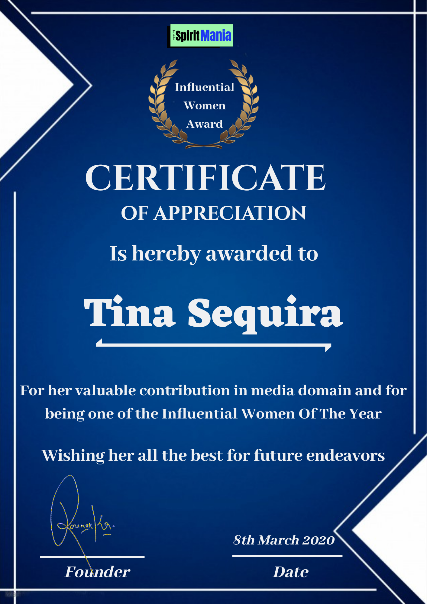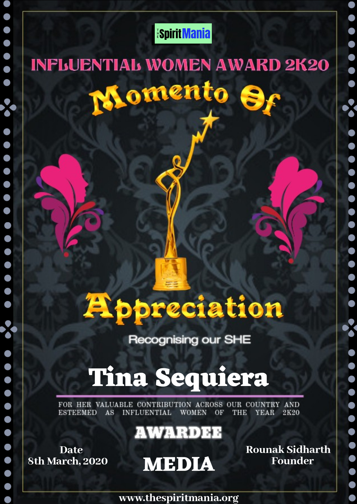 Tina Sequeira has been named in the Earth’s Biggest List of Empowered and Inspiring Indian Women.