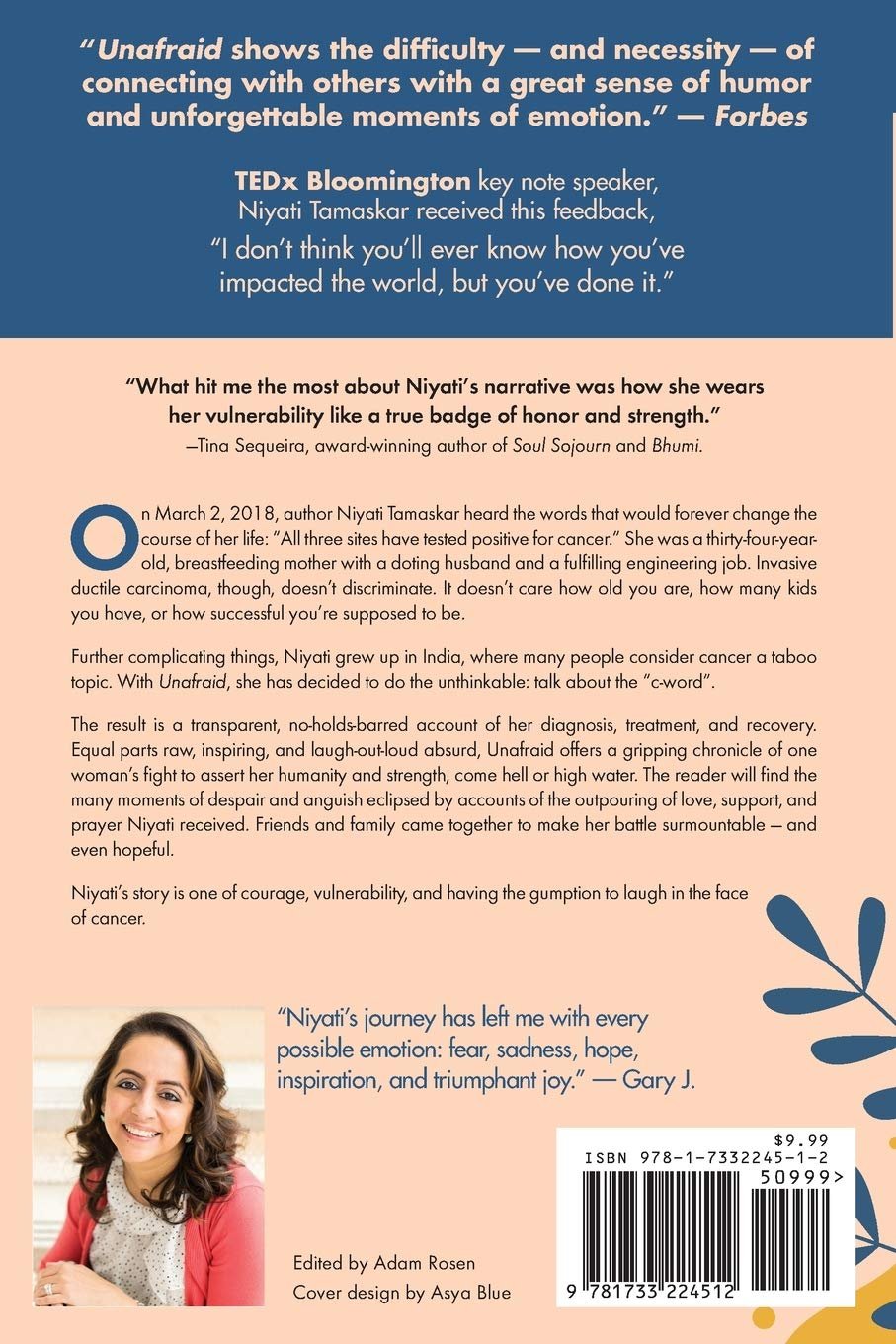 Tina Sequeira’s review featured on the book cover of Niyati Tamaskar’s gutsy memoir ‘Unafraid: A survivor’s quest for human connection,’ alongside Forbes magazine, which featured it as one of eight books that spark human connection in 2020. Niyati Tamaskar, an author, TEDx speaker, and advocate for women and minorities, shares her story as a cancer survivor and breaks the shame, taboo, and stigma associated with breasts and cancer, especially in the Indian society. All book proceeds go to the American Cancer Society.