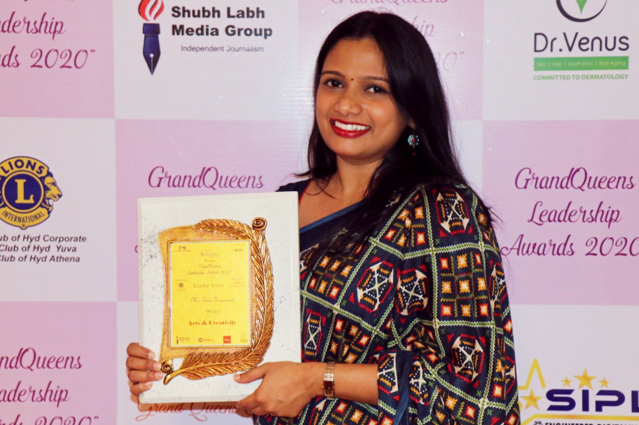 Winner of the prestigious ‘GrandQueens Leadership Awards’ (2020) in association with Lions’ Club International, held in Hyderabad on International Women’s Day, 8th March 2020. The esteemed jury bestowed the award in the top Leader series category in recognition of my work as a Writer.