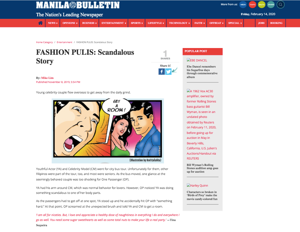 One of my quotes from my book “Soul Sojourn” got featured in the MANILA BULLETIN, Philippines’ largest English language publication and the second oldest newspaper published in the Philippines and the Far East, at the end of an entertainment story by their feature writer Mike Lim.