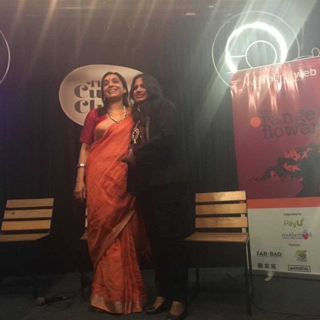 Receiving the prestigious Orange Flower Award (2017) in the category of Writing on Work by Women’s Web from Sudha Menon, one of India’s leading contemporary authors.