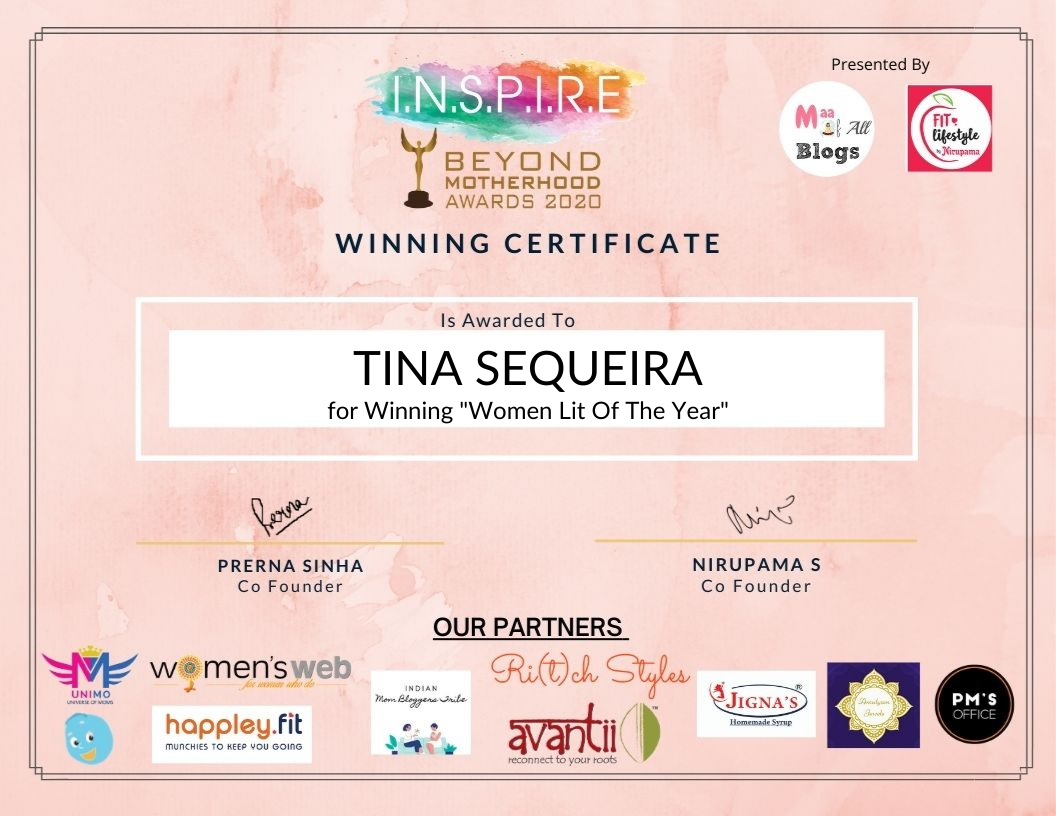 Winner of the prestigious I.N.S.P.I.R.E Beyond Motherhood Awards 2020 in the “Literature” category.